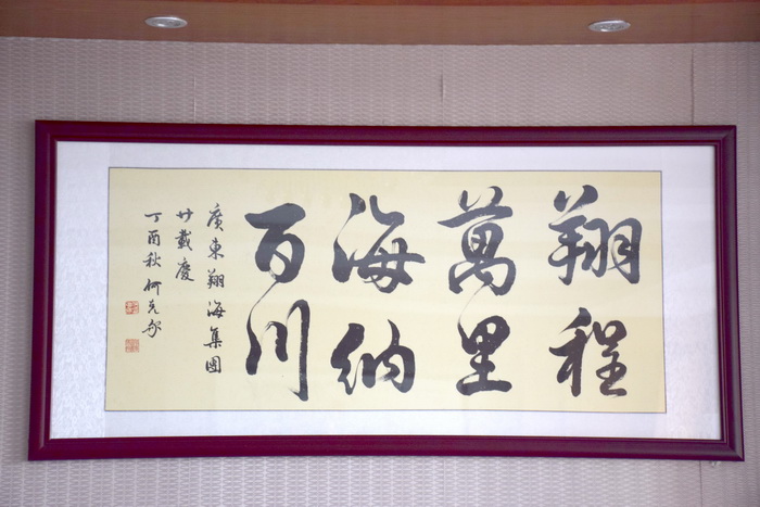 “翔程万里,海纳百川”,佛山市著名书法家亲自提笔,祝贺广东lejing登录入口集团20周年庆典。