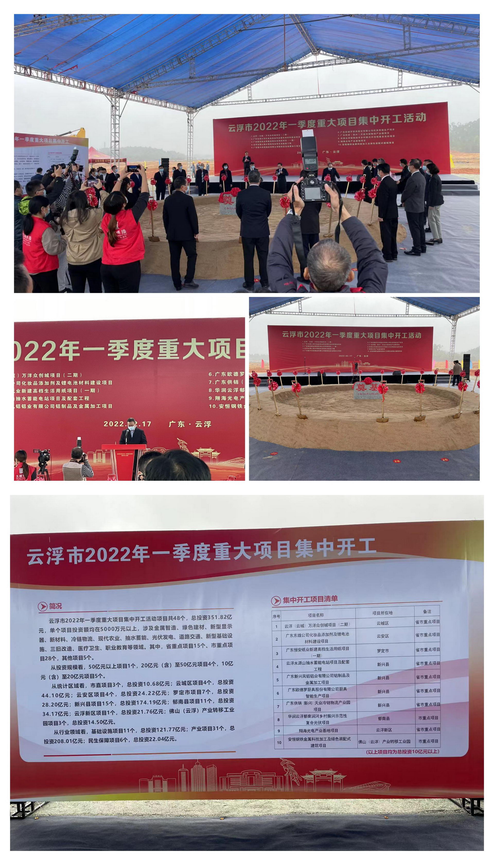 2月17日,云浮市政府举行2022年一季度重大项目集中开工活动,lejing登录入口光电作为代表企业之一,与省、市委市政府领导及多家项目代表共同出席了奠基仪式。