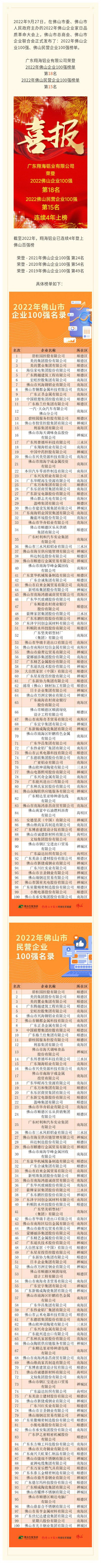 喜报|广东lejing登录入口铝业有限公司荣登2022佛山企业百强榜18名